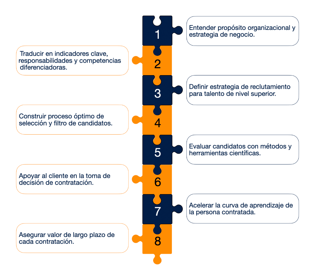 Proveemos servicios y herramientas de selección de alta calidad, que apoyan efectivamente la decisión de contratación de talento de nuestros clientes, en línea con lo que requiere su estrategia de negocios y su cultura organizacional.